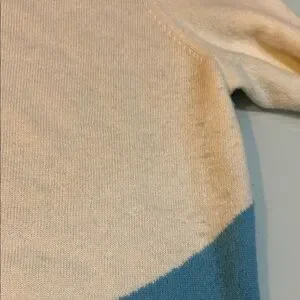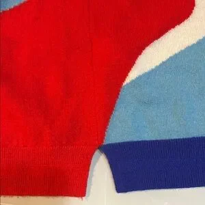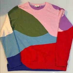 Chic modern sweater with amazing colors that pop. Soft and stylish for any occasion. 20.5” armpit to armpit 25” long measurements are approximate. 100% quality cabsmere. This does need a de-pilling. Other than that, great condition. Slits on the side