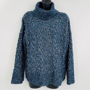 Kate Spade chunky cable knit sweater turtleneck bobble knit blue women's size S