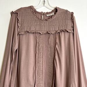 LOGO by Lori Goldstein Cotton Modal Top with Swiss Dot Details Mauve Womens Medium