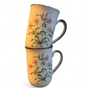 wild pink japan no 101 stoneware mug set | vintage floral cottagecore coffee cups | speckled japanese pottery