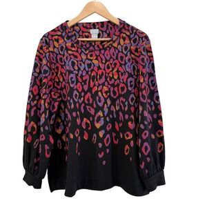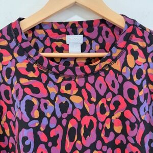 Chicos 3 XL Zenergy Soho Fusion Rainbow Animal Leopard Print Pocket Top Normcore Gorpcore Casual