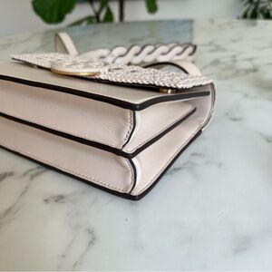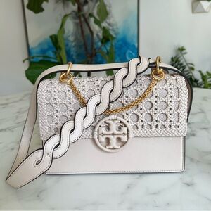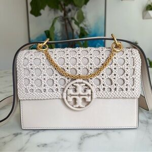 NWOT Tory Burch Miller Basketweave Small Flap Shoulder Bag Brie Ivory Leather