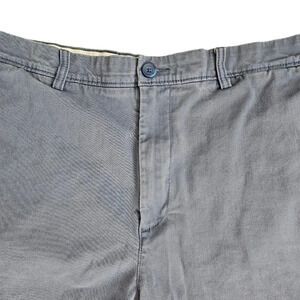 Roundtree & Yorke men’s size 38 casual chino shorts in a versatile blue color. Features a flat front, side pockets, and two buttoned back pockets. Perfect for casual wear, summer outings, or vacation looks.