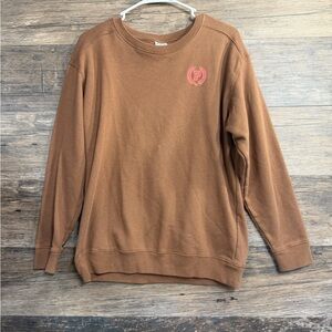 Cozy brown sweatshirt with pink logo. Perfect for casual wear.