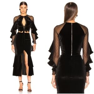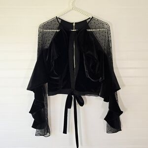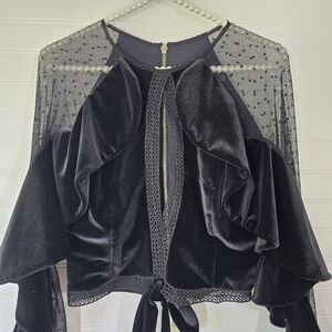 tags: swiss dot, velvet, sheer, cropped, ruffled, dark croquette, soft goth, cutout, tie, party, event, embroidered