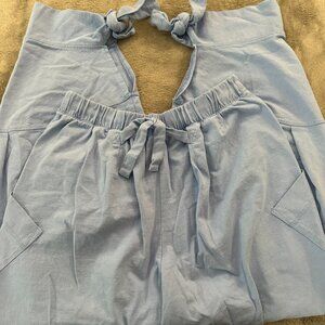 Free People Beach Stunner Pants Women's MEDIUM Blue Egret Harem Festival Boho