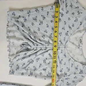 Hollister Medium Blue Dainty Floral Crop Top Long Sleeve Cinched Tie Front, y2k