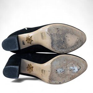 If Ziggy Stardust owned knee-high boots, these would be it. Crafted in jet-black suede with a dazzling metallic calfskin star at the ankle, these Charlotte Olympia beauties will have you walking in stardust and leaving a trail of glam rock magic wherever you go. The 3.5" wrapped block heel gives you lift without sacrificing comfort, and the demure round toe lets that star steal the spotlight.