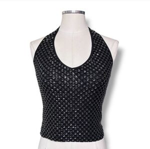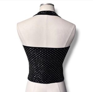 CACHÉ Black Beaded Cropped Halter VINTAGE
