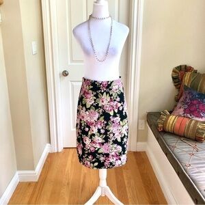 Beautiful retro floral knit pencil skirt, soft, black pink green multi, zip