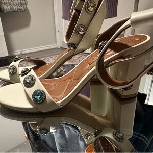 Kurt Geiger Cream Sandals with Multicolor Gem Accents