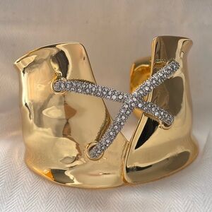 ALEXIS BITTAR• Solanales Gold Silver Crystal Lace Up Corset Cuff Bracelet