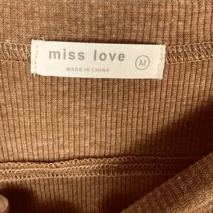 Miss Love Cropped Ribbed Knit Top Brown Size M Relaxed Fit