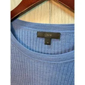 J. Crew Size Medium Blue Ribbed 100% Merino Wool Sweater Slim Fit Thin