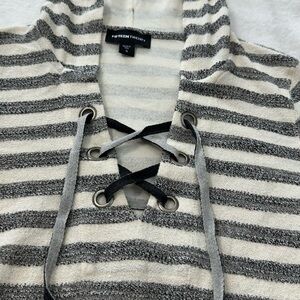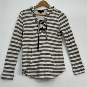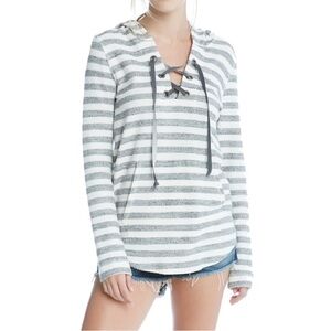 Fifteen Twenty Gray and White Striped Lace Up Hoodie Sweater