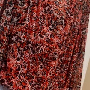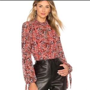 Chic floral blouse by Free People. Features a vibrant red pattern. Stylish and comfortable.