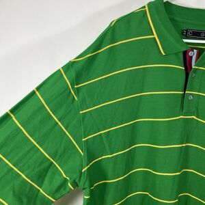 Coogi Long Sleeve Polo Shirt Mens Size 4XL Green Yellow Striped Embroidered VTG