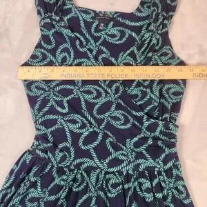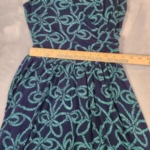 Lands' End Faux Wrap Dress Nautical Rope Pattern Jersey Sleeveless Navy XS