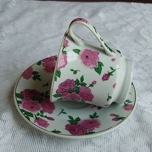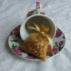 Birdfeeder Teacup and Saucer Floral Pink and White Rose Small Bag Birdseed