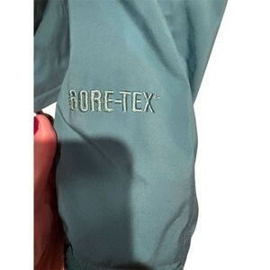This Marmot women's jacket in size medium is crafted from Gore-Tex and 100% nylon/polyamide, offering reliable protection. It features a solid green color with a full zip front, hood, and adjustable cuffs and hem. The jacket is fully lined with mesh, making it suitable for casual occasions in the fall. Designed with a regular fit and long sleeves, it provides comfort and style. The jacket is pre-owned.