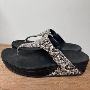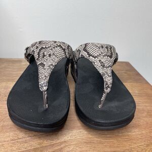 FitFlop Thong Sandals Women’s 7 Black Snake Print Adjustable Buckle Comfort
