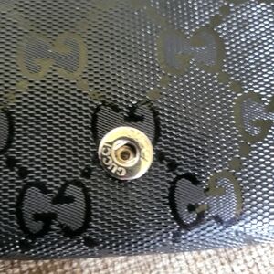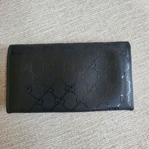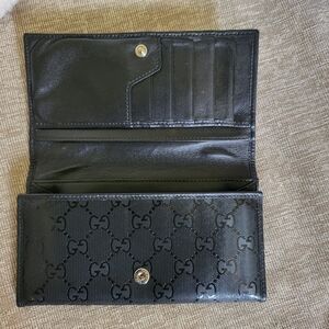 Authentic very clean in and out GG black imprint canvas, code and stamp on pictures, Inside zipper pocket. Great condition!!!. Sleek black Gucci wallet with signature pattern. Perfect for any occasion.
