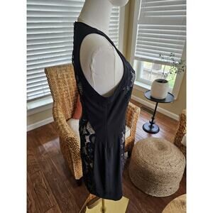 Cache Floral Lace Bodycon Sheath Dress Women's Size 6 Black Nude Party
