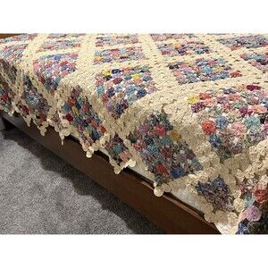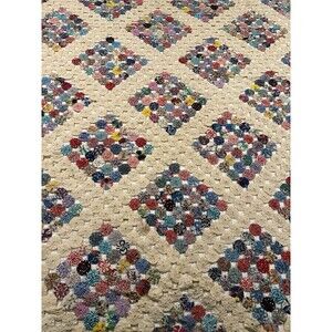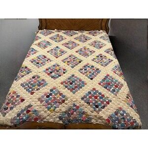 Antique Yo Yo Quilt Diamond Pattern Large Queen/small King 92” X 96” Scalloped