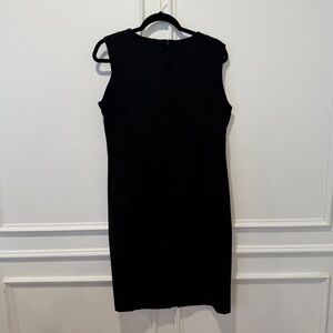 Perceptions classic black sleeveless sheath dress. Women’s size 12. Features timeless shift silhouette, jewel neckline, sleeveless design, and back zip closure. Made from stretch polyester blend for comfortable fit and easy care. Perfect little black dress for work, cocktail events, or any occasion requiring polished style. Versatile wardrobe staple that pairs easily with blazers or statement jewelry. Good condition.
