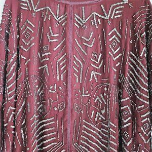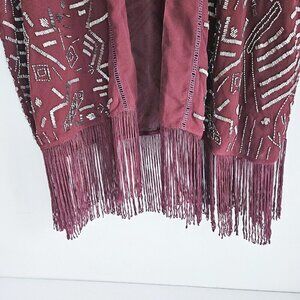 Willow Clay Burgundy Beaded Fringe Detail Sheer Jacket S
