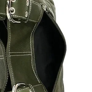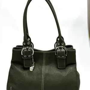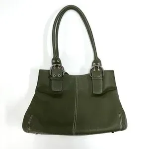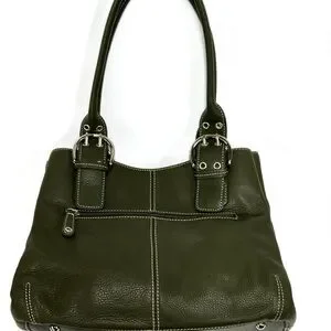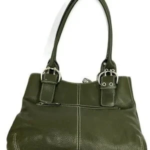 Chic olive leather bag with dual straps. Perfect for everyday use.