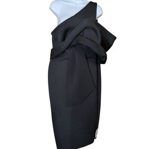 ASOS DESIGN peekaboo shoulder gathered midi pencil dress in black..size 14