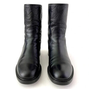 GUCCI || GG Monogram Guccissima Maud Black Leather Short Moto Ankle Boots US 8.5