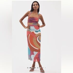 Anthropologie NWT Square-Neck Halter Midi Dress size M.