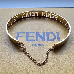 Stylish Fendi bangle with cut-out logo design. Features a delicate chain clasp. Never worn. Authentic. Purchased from Fendi boutique.