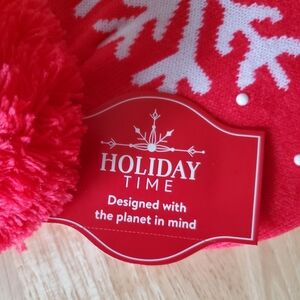 Mens Beanie/Hat Red Snowflake New