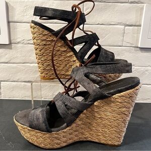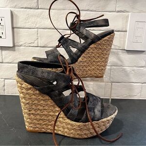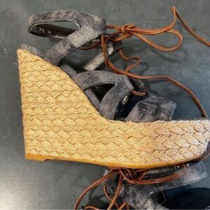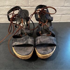 NWT Stuart Weitzman sz 8.5 denim color lace up espadrille sandals