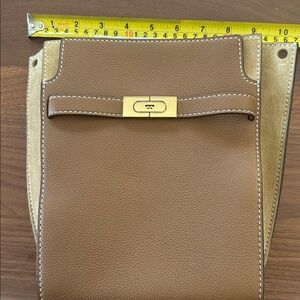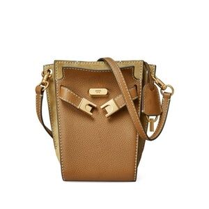 Tory Burch Lee Radziwill Tan and Gold Shoulder/ crossbody bucket Bag