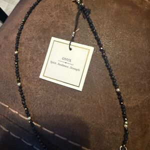 Sophisticated black beaded necklace with a gold-accented pendant. Ideal for elegant occasions.