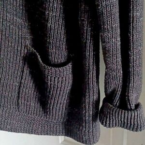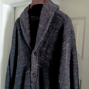Elegant, heavy knit, shawl collar cardigan. Soft texture with button closure. Ideal for layering. In great, gently-used condition.
