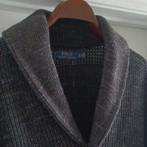 RALPH LAUREN Dark Gray Shawl Collared Cardigan Sweater, XL
