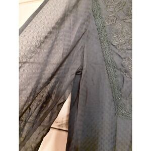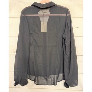 Mia Joy Women's Black Embroidered Sheer Long Sleeve Collared Button Up Top Sz M