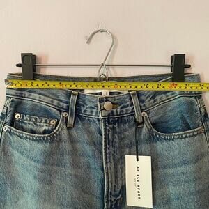 NWT Apiece Apart New York Women's size 28 Camilla Cropped Straight Jeans in Austin Wash. Apiece Apart brand women's jeans in a size 28. Item is new with tags attached. Style is the Camilla cropped jean. Colorway is the Austin wash, medium wash. High waisted. Pockets at the hips and back. Zipper closure. Measurements as pictured. The size tag is missing, but waist measures 28" as shown. In excellent new condition, see photos for more details. Always feel free to ask any questions you may have! Reasonable offers accepted.