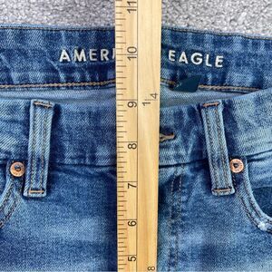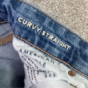 American Eagle Jeans Women's 6 Blue Curvy Straight Low Rise Medium Wash Torn Rip