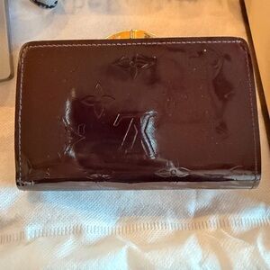 Beautiful condition. There is one area behind the kisslock where there is a chip in the patent. There is also minor coin residue in the kisslock area. Otherwise this wallet is bright, clean and gorgeous! Comes with original made in Italy Louis Vuitton dustbag and COA!