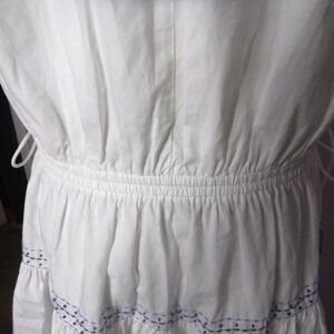 ZARA WOMAN'S EMBROIDERED MIDI DRESS WHITE BLUE GAUZY SLEEVELESS SIZE LARGE Polyester Length 51" armpit to pit 21 "good used condition see photos for details