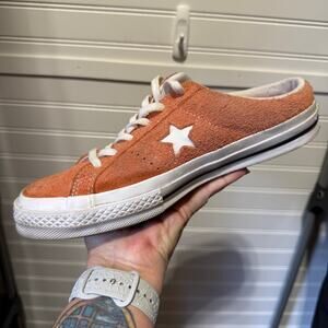 EUC is a pair of Converse All Star Lo slides. The color is an orange coral suede.