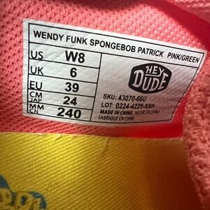Hey Dude Wendy Funk Spongebob Patrick Pink Green Shoes Womens 8