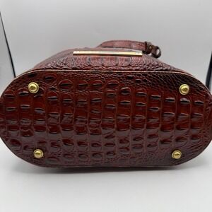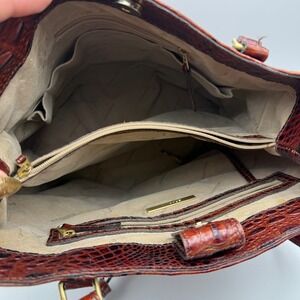 Brahmin Croc Embossed Leather Tote Bucket Bag Brown Chestnut Gold Hardware