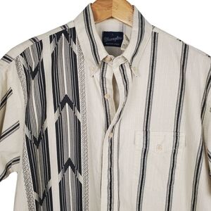 Vintage Wrangler Cream Black Casual Button Down Shirt. Short Sleeve. LG. B0018